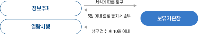 행정안전부 개인정보보호 종합 포털 → 민원 마당 → 개인정보 열람 등 요구(본인확인을 위하여 아이핀 또는 본인 명의 휴대폰 인증이 필요함)